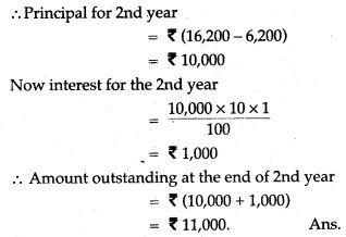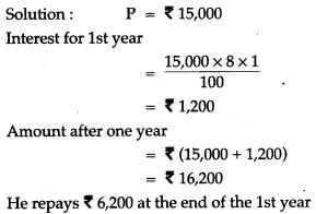Question 5. Mr. Kumar borrowed Rs. 15,000 for two years. The rate of interest for the two successive years are 8% and 10% respectively. If he repays Rs. 6,200 at the end of the first year, find the outstanding amount at the end of the second year.