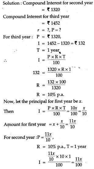 Question 6. The compound interest, calculated yearly, on a certain sum of money for the second year is Rs. 1320 and for the third year is Rs. 1452. Calculate the rate of interest and the original sum of money.