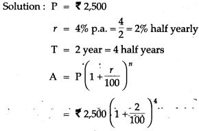 Question 2. If the interest is compounded half yearly, calculate the amount when the Principal is Rs. 7,400, the rate of interest is 5% per annum and the duration is one year.
