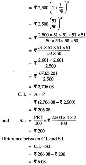 Question 2. Find the difference between the simple interest and compound interest on 2,500 for 2 years at 4% p.a., compound interest being reckoned semi-annualy.