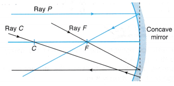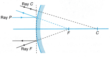 (a) A parallel ray (ray P) that is incident along a path parallel to the principal axis and is reflected through (or appears to go through) the focal point.