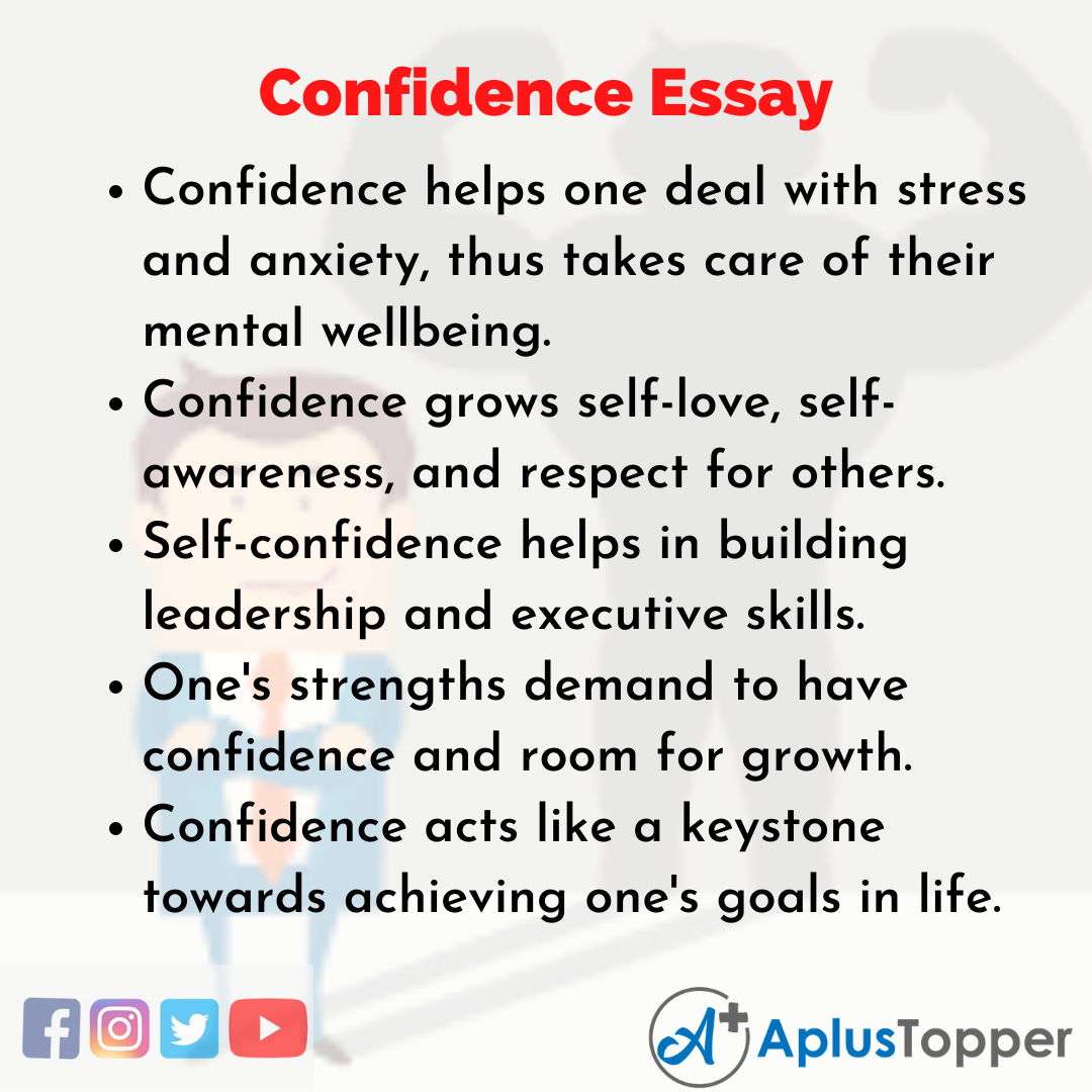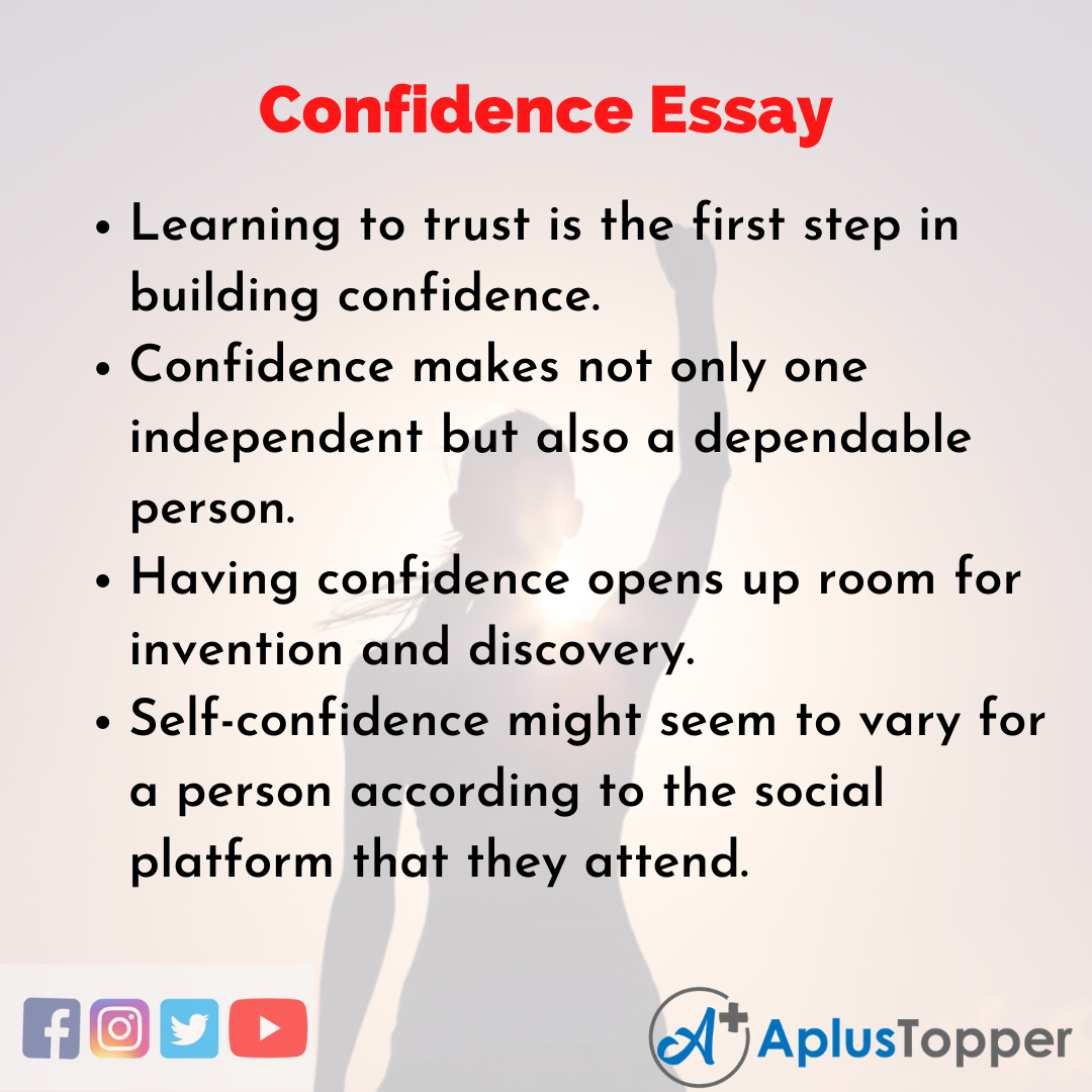Confidence Essay: Confidence and trust are two interlinking attributes that are mutualistic. The origin of the word ‘confidence’ is from the Latin word ‘fider’ meaning trust.