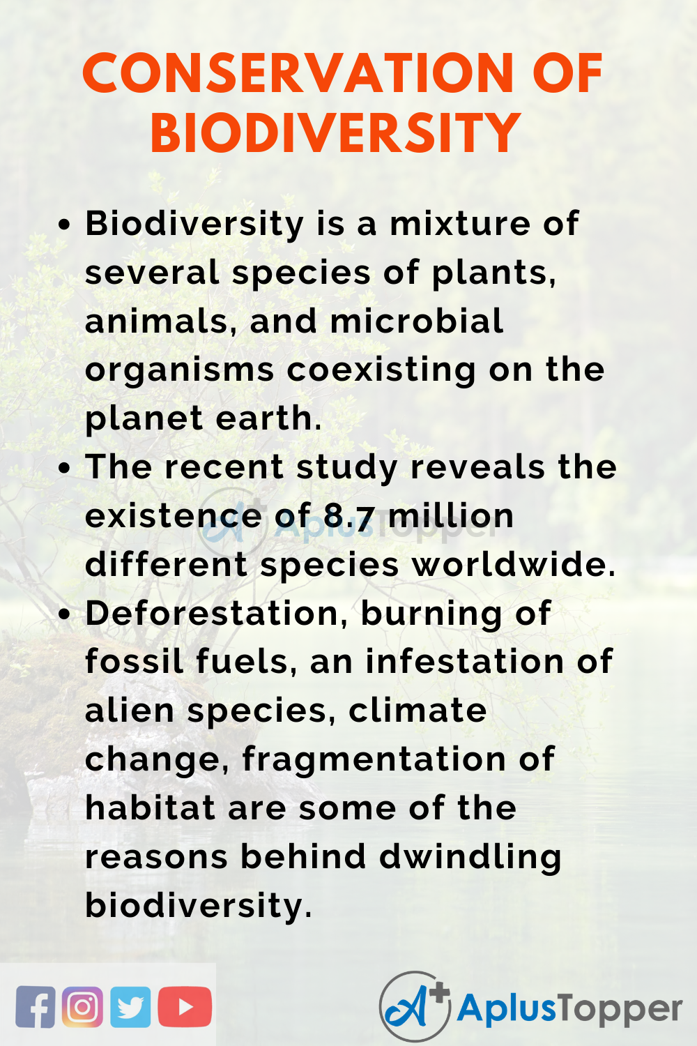 Students who are preparing for competitive examinations or entrance examinations can use this piece on ‘Conservation of Biodiversity’ for reference. Moreover, children can take note of these points to help them deliver a speech on the stage. Children who are planning to participate in literary work or debate competition can also find it very useful.