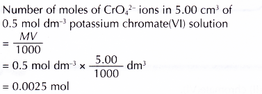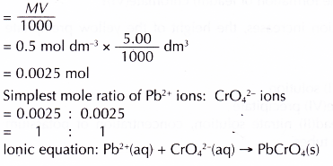 Volume of potassium chromate(VI) solution required to completely react with 5.0 cm3 of lead(II) nitrate solution = 5.00 cm3