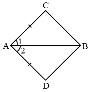 ∴ By SAS, ∆ABC ≅ ∆ABD Proved
