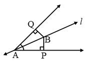 Example 18: Line l is the bisector of an angle ∠A and B is any point on l. BP and BQ are perpendiculars from B to the arms of ∠A (see figure). Show that