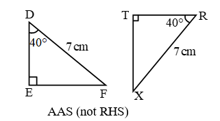 ∴ ∠A = ∠Q, ∠C = ∠R, AC = QR (c.p.c.t.) - RHS (Right Hypotenuse Side) Congruence Criteria (Condition):