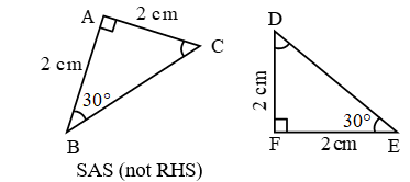 In this case, AC = DF, BC = EF and ∠C = ∠F.