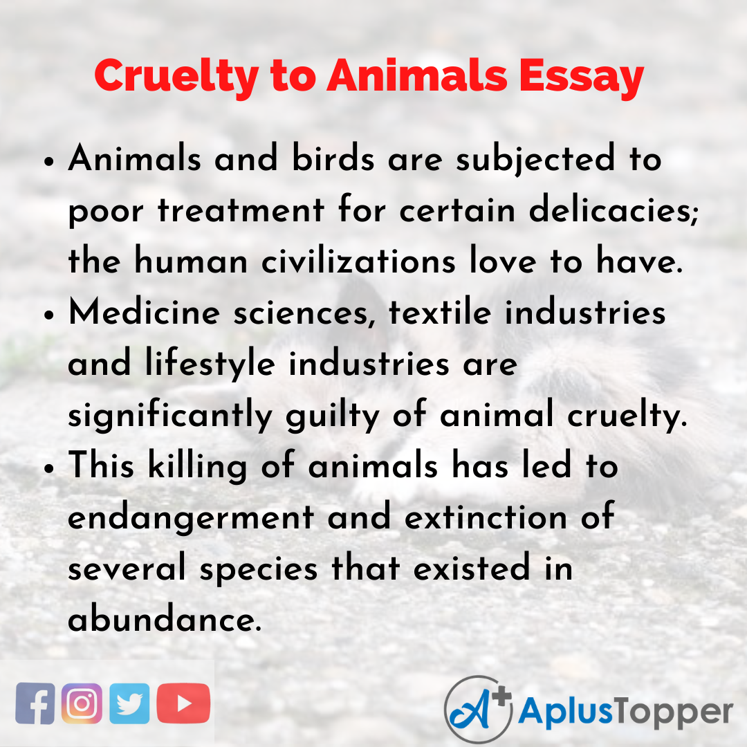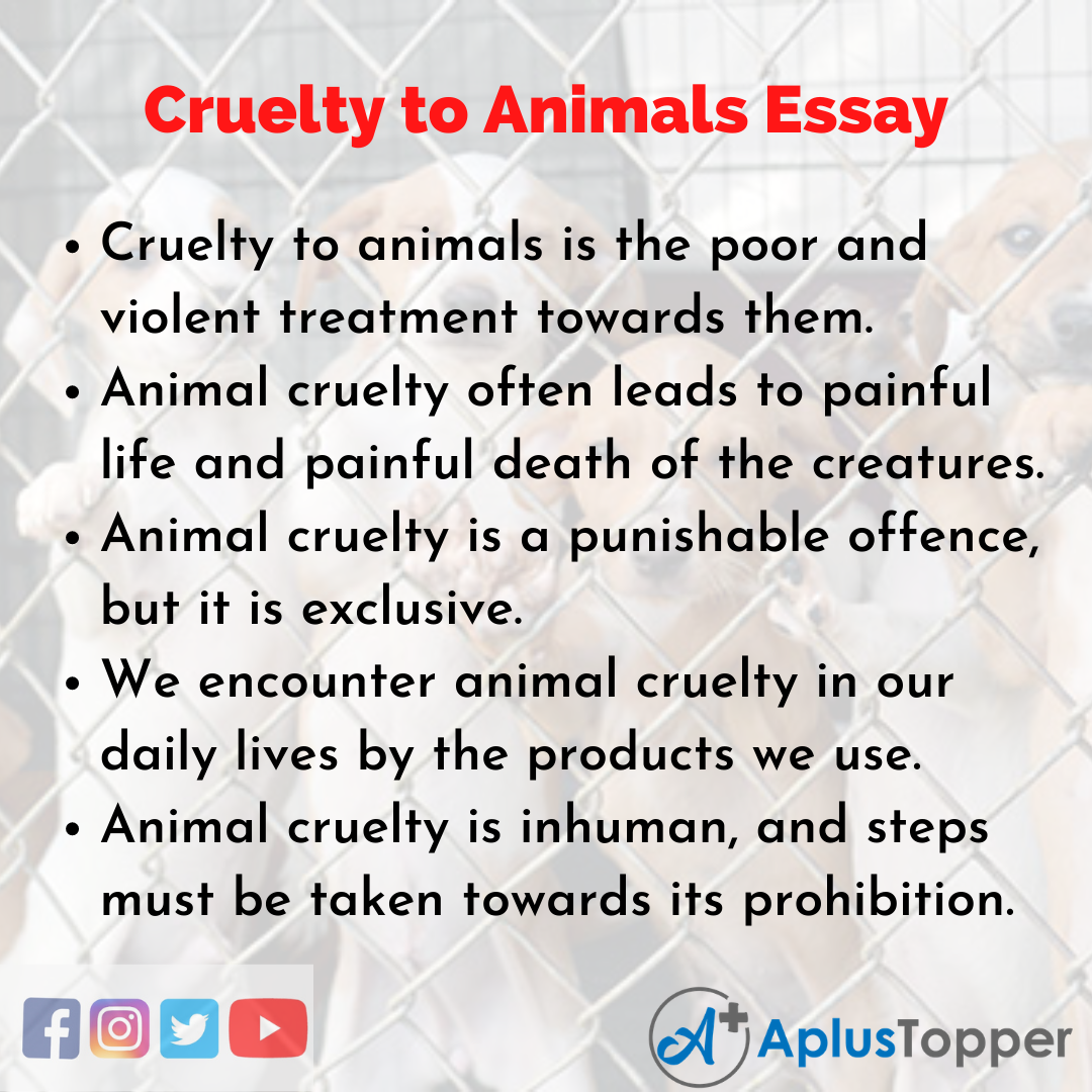 Short Essay on Cruelty to Animals Essay is usually given to classes 1, 2, 3, 4, 5, and 6.
