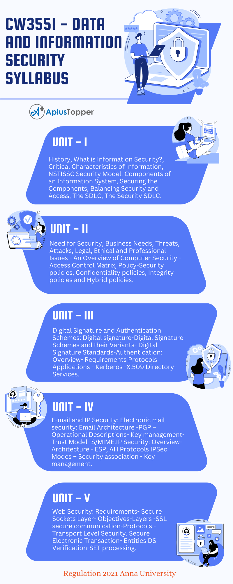 We included the proper textbooks and references to assist in some way in your preparation. It will enhance your preparation and strategies to compete with the appropriate spirit with others in the examination. If you see, you can find the detailed syllabus of this subject unit-wise without leaving any topics from the unit. In this article CW3551 – Data And Information Security Syllabus, You can simply read the following syllabus. Hope you prepare well for the examinations. I hope this information is useful. Don’t forget to share with your friends.