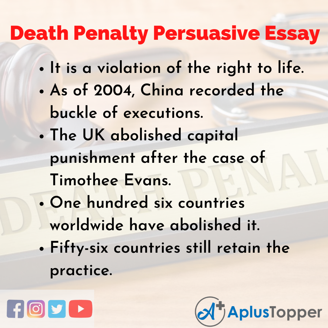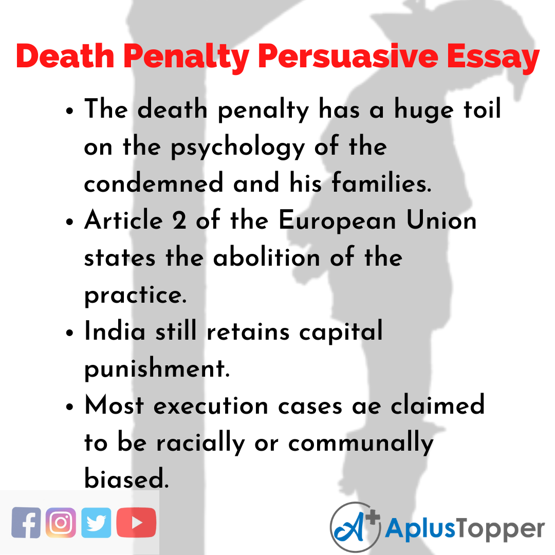 Long Essay on Death Penalty Persuasive is usually given to classes 7, 8, 9, and 10.