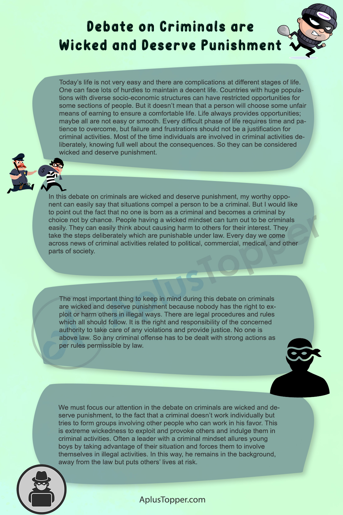 Debate on Criminals are Wicked and Deserve Punishment: Good Morning respected jury members, respected teachers, my worthy opponents, and my dear friends.