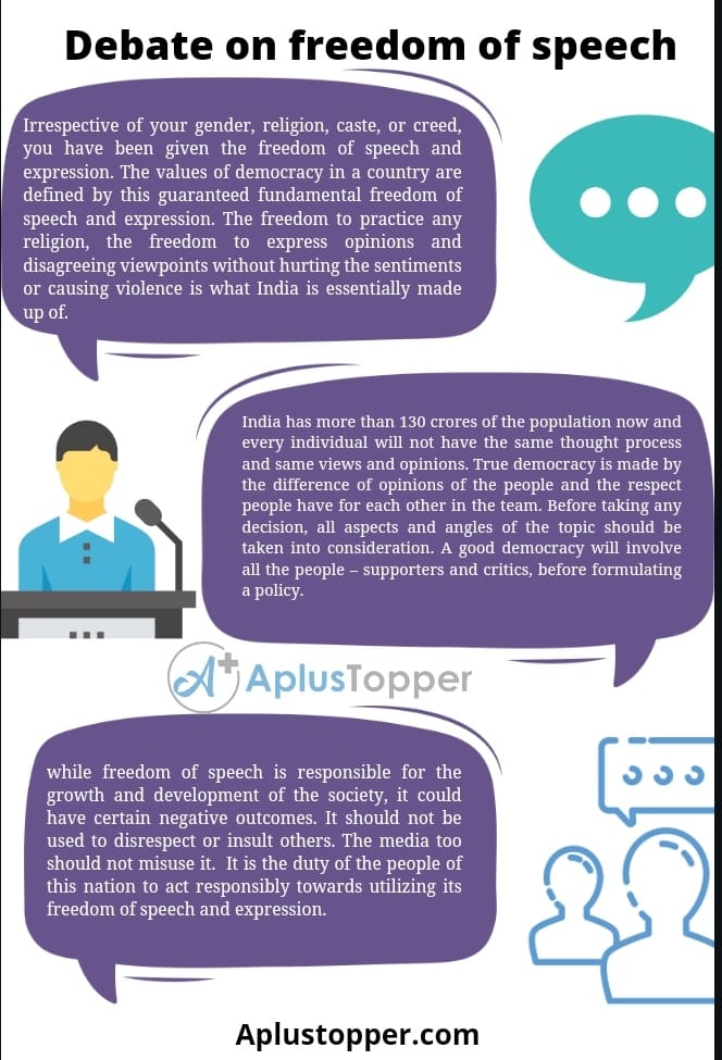 Debate on Freedom of Speech highlights that Freedom of speech allows the citizens of the country to express and share their ideas, views and opinions openly without any restrictions. The public and the media are free to comment on any political activity and can also express their views towards anything they think is wrong. The media can openly criticise the government if it doesn’t work in the favour of the people.