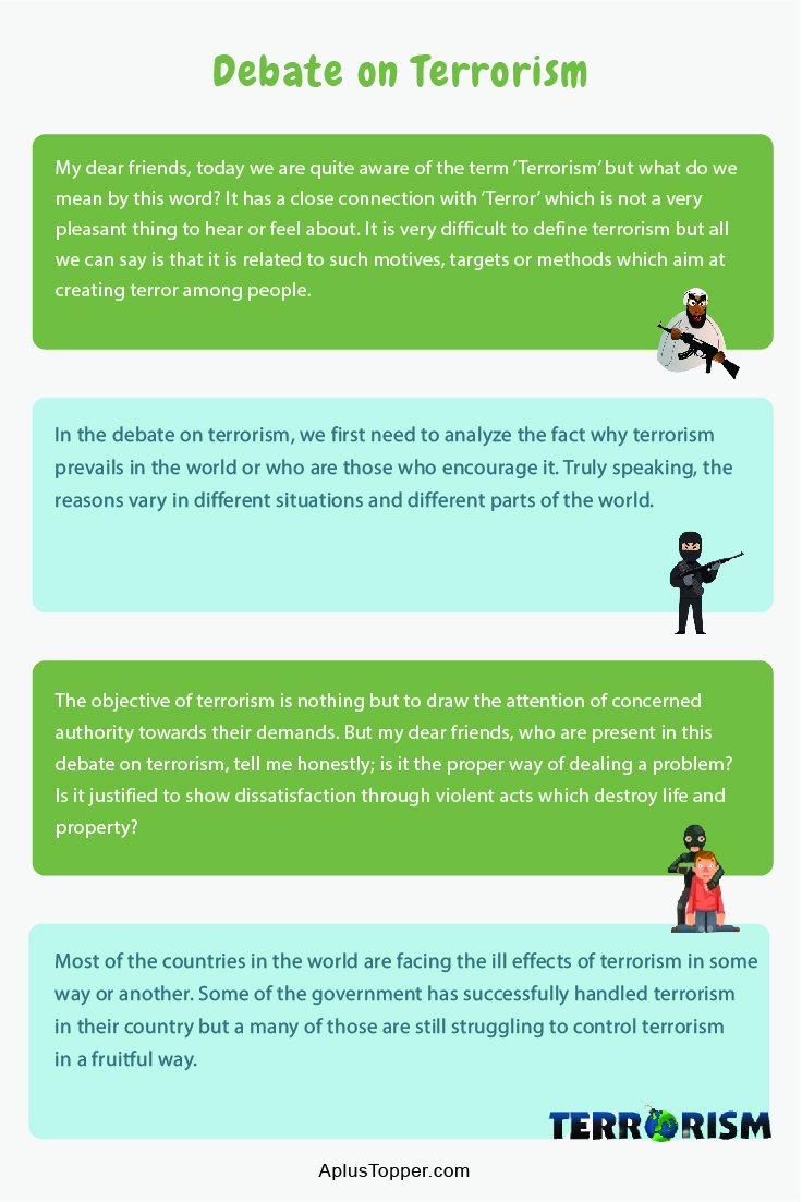 Debate on Terrorism: Good Morning, honorable judges, respected teachers, and my fellow opponents and dear friends.