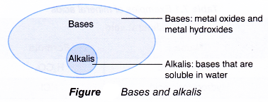 Table shows some examples of bases and alkalis.