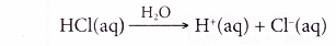 HCl(aq) + H2O(1) → H3O+(aq) + Cl–(aq)