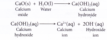 - When a soluble metal oxide dissolves in water, it reacts with water to form the hydroxide ion as one of its products. For example, calcium oxide reacts with water to form calcium hydroxide, which then ionises to produce hydroxide ion.