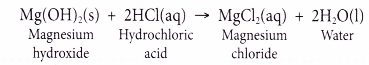 A base is a substance that reacts with an acid to form a salt and water only. - (a) For example, magnesium hydroxide reacts with hydrochloric acid to form the salt magnesium chloride and water.