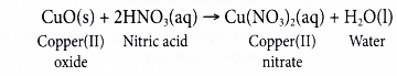 (b) On the other hand, copper(II) ‘oxide reacts with nitric acid to produce the salt copper(II) nitrate and water.
