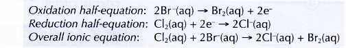 (a) chlorine displaces bromine from potassium bromide solution. Chlorine acts as the oxidising agent, whereas bromide ions act as the reducing agent.