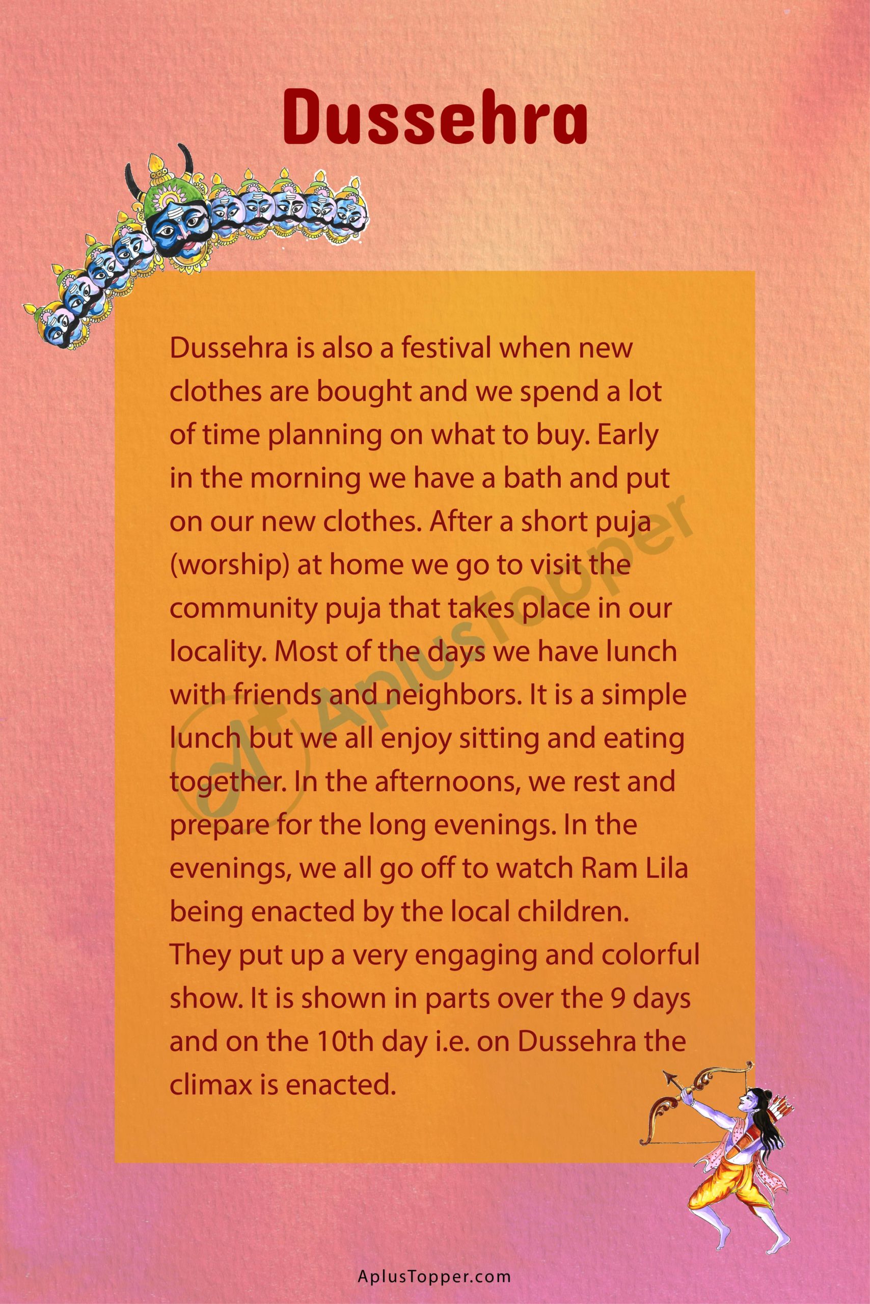 Dussehra Essay is usually given to classes 7, 8, 9, and 10.