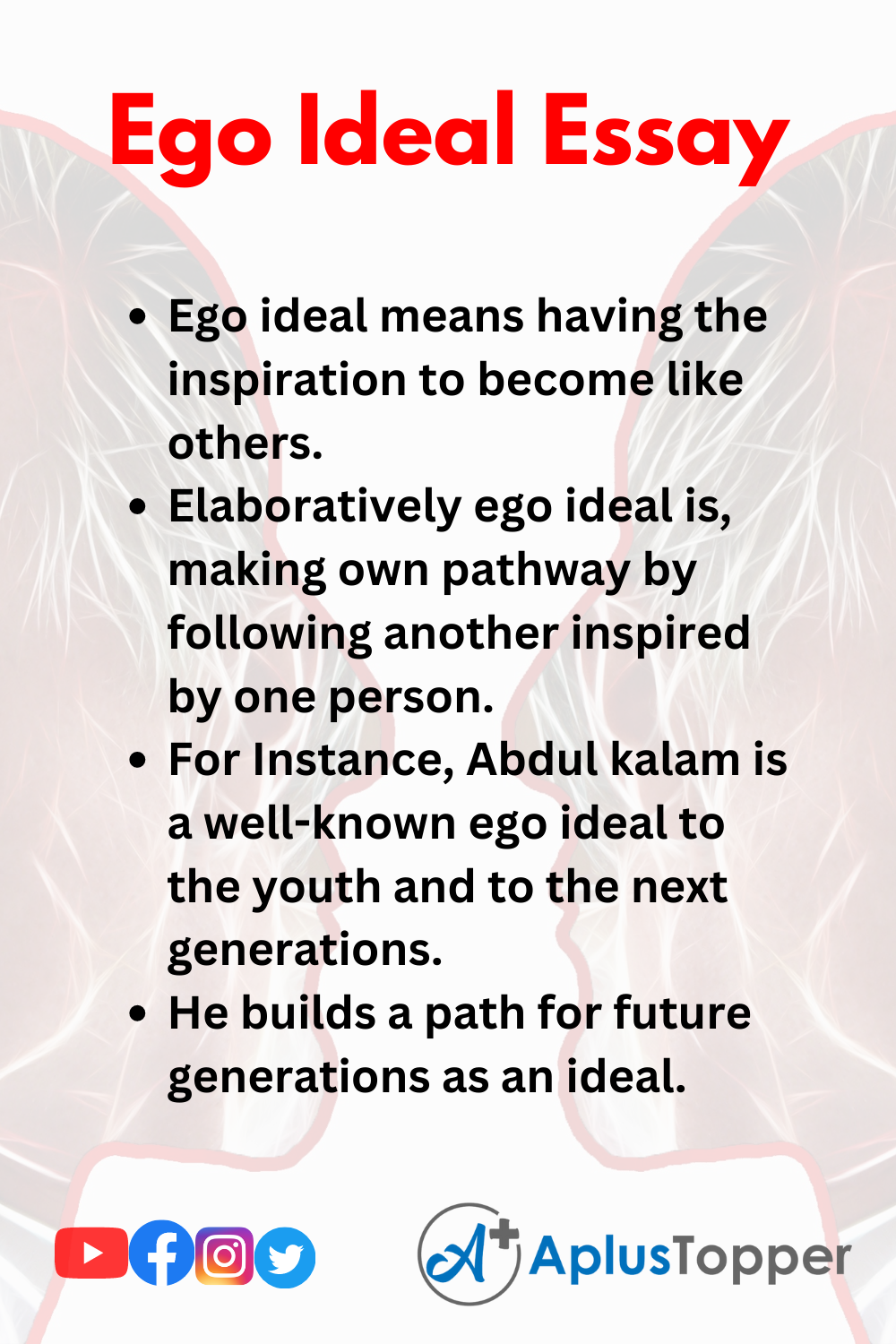 The Ego ideal essay is the best awareness essay to discuss with others. Everyone in their life has been suffering from ego issues. The Ego is a three-letter word that is simple to pronounce orally, but its function in the world is very effective, by lack of controlling the ego issues leads to the breakdown of good relations, either with the family or with friends. It is the part and parcel of the emotions of human nature.