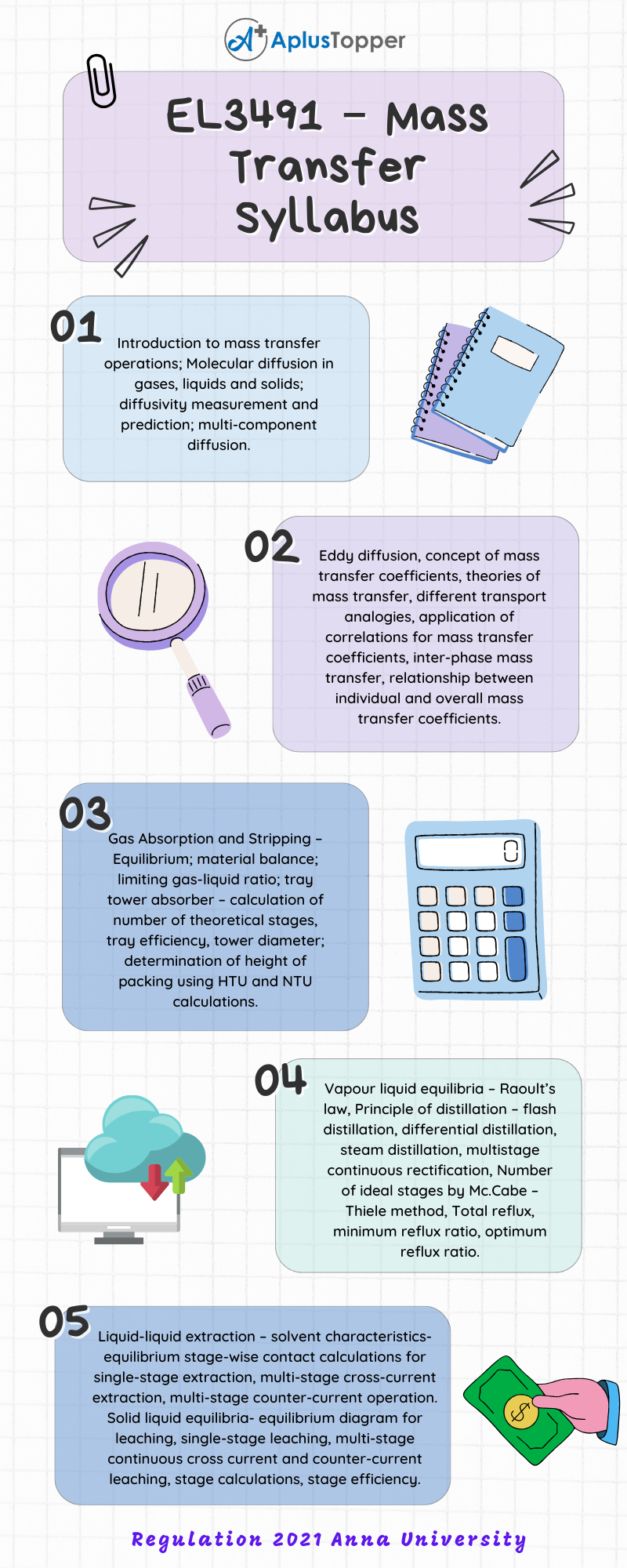 We aim to give the semester IV EL3491 – Mass Transfer Syllabus to avoid confusion about the unit-wise syllabus. You can take notes from it. And Prepare strategies on how to read, from where to read, etc… It will become easy to learn about several topics. We included the required references and textbooks. Hope this information is useful. If you have any doubts regarding the syllabus please comment below. Never forget to share with your classmates.