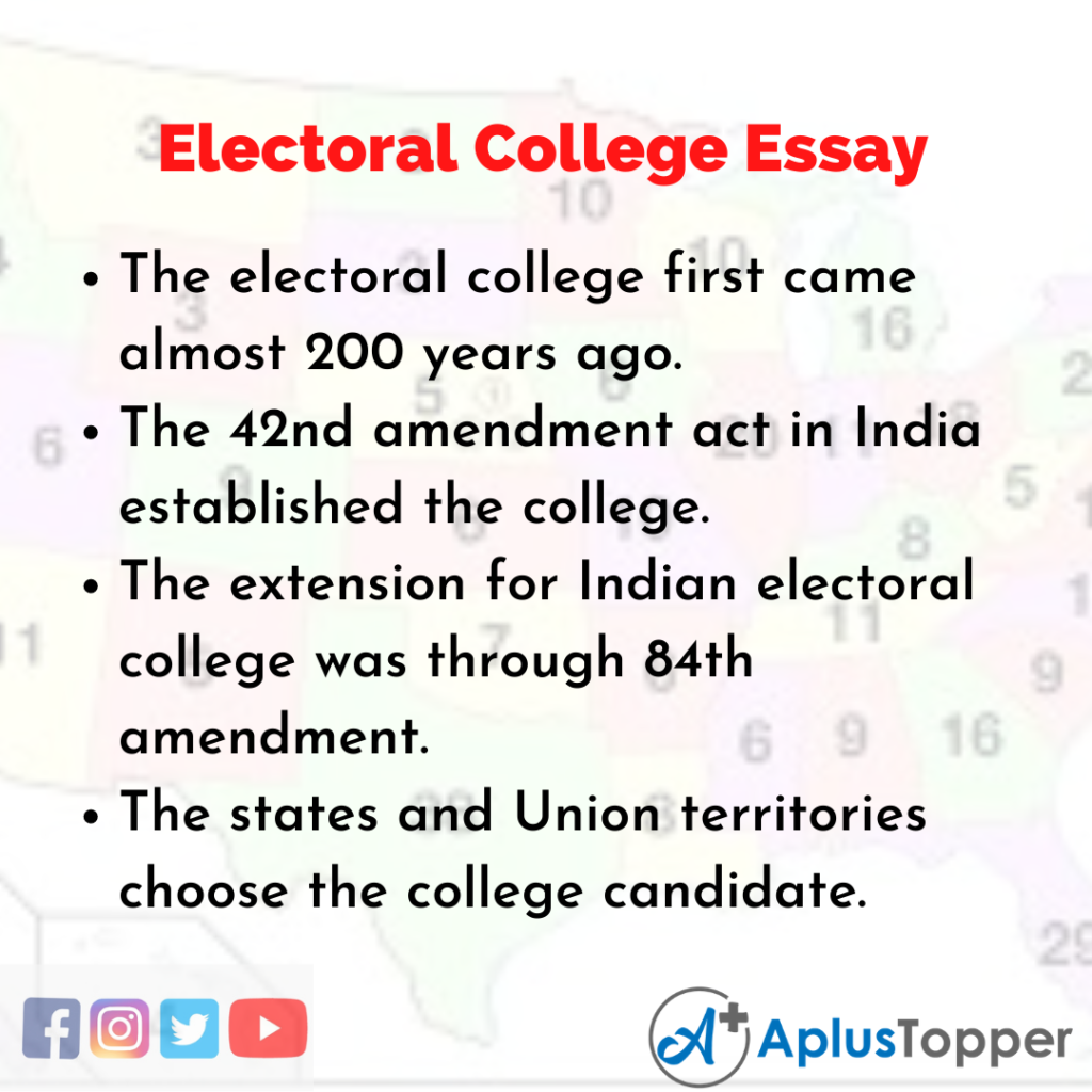 Long Essay on Electoral College is usually given to classes 7, 8, 9, and 10.