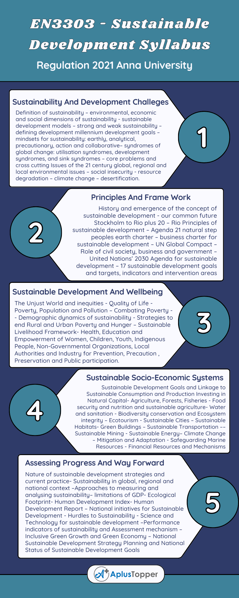 We aim to provide a detailed syllabus of EN3303 Sustainable Development. You can find unit-wise concepts and can easily make your preparations for examinations. It wouldn’t be difficult to find all the requirements in one place for the subject syllabus. This motto makes us provide this information to make it easy for you. Hope this information is useful. Don’t regret to share it with your classmates.