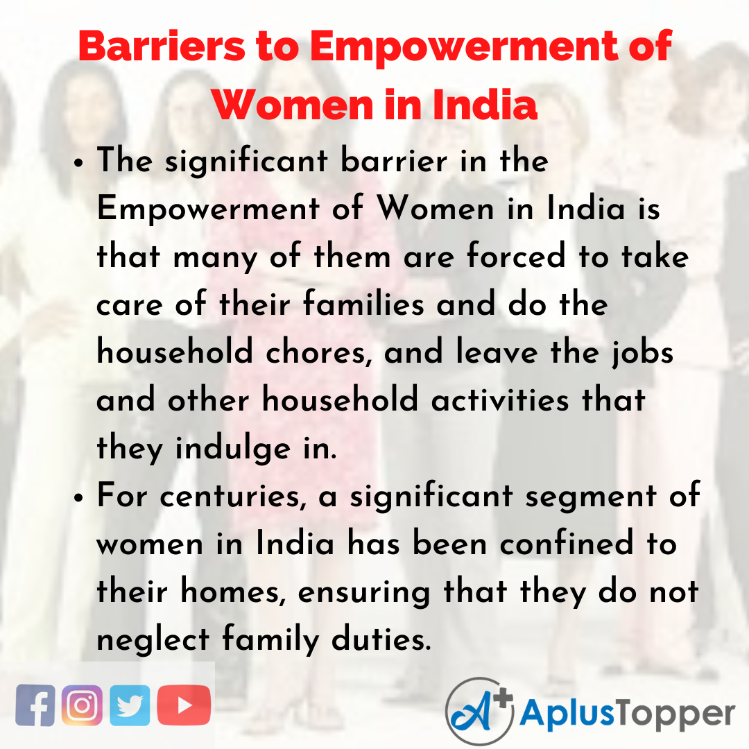 Long and Short Essays on Barriers to Empowerment of Women in India for Students and Kids in English