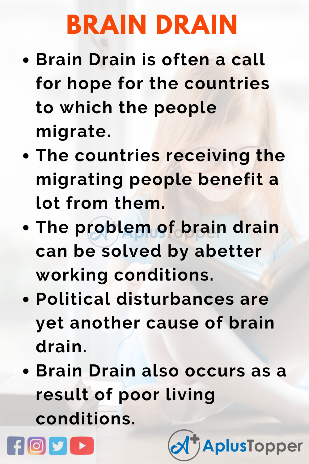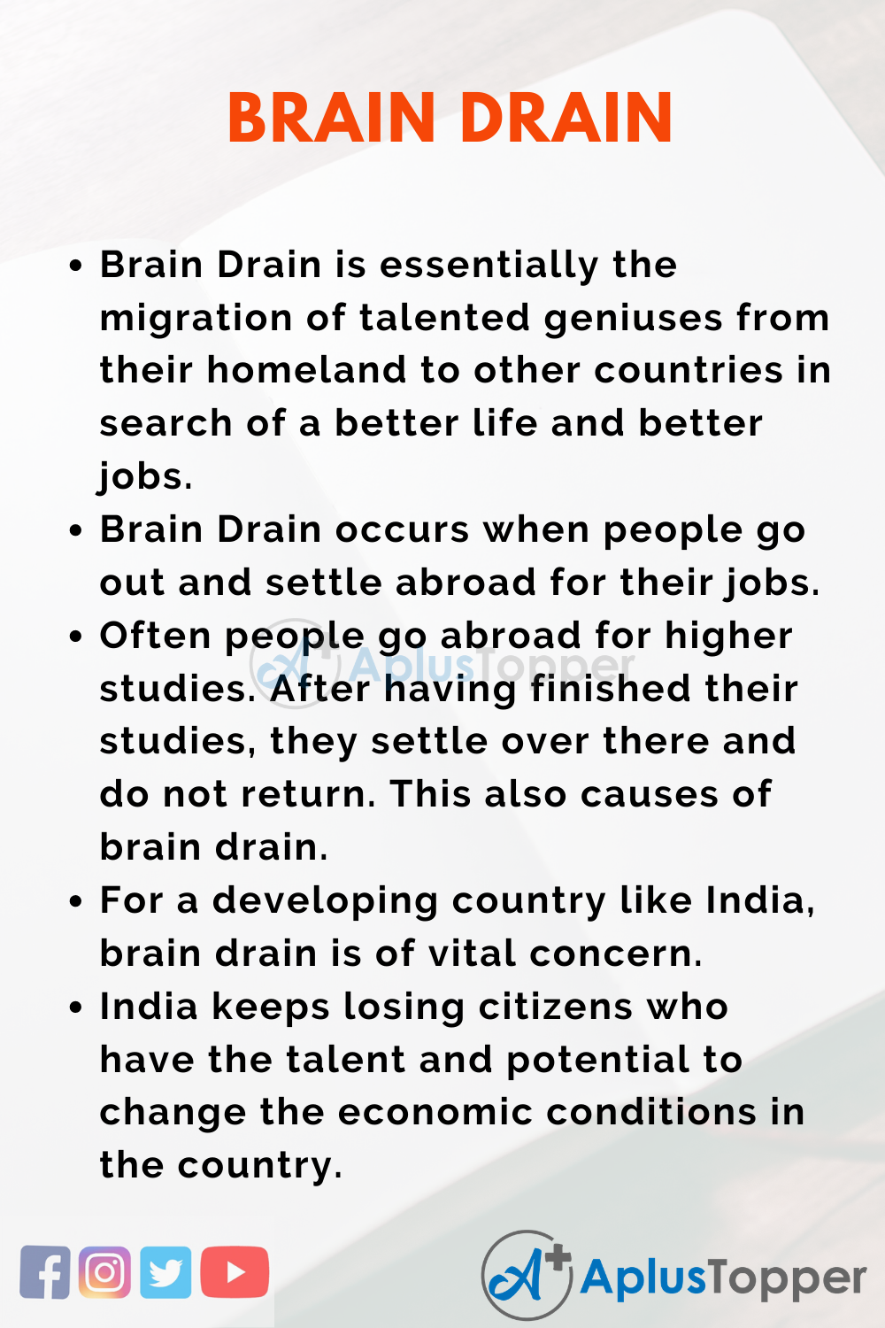 Brain Drain issues a vital threat before a country. The topic of Brain Drain is an essential subject for compositions among students. They are often asked to write briefly or elaborately on the matter.
