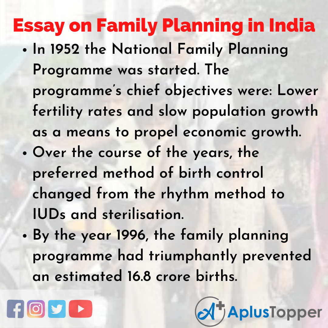 Long Essay on Family Planning in India is usually given to classes 7, 8, 9, and 10.