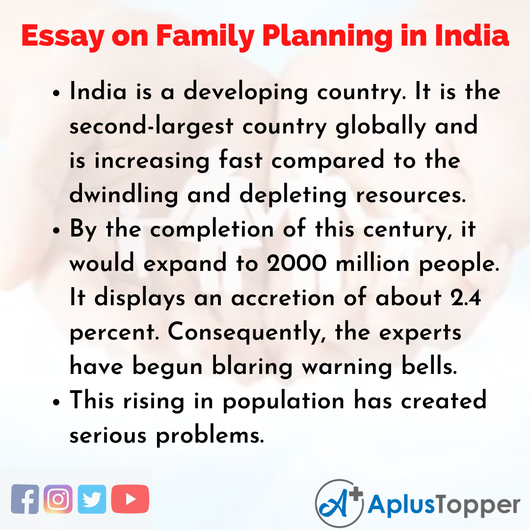 Short Essay on Family Planning in India is usually given to classes 1, 2, 3, 4, 5, and 6.