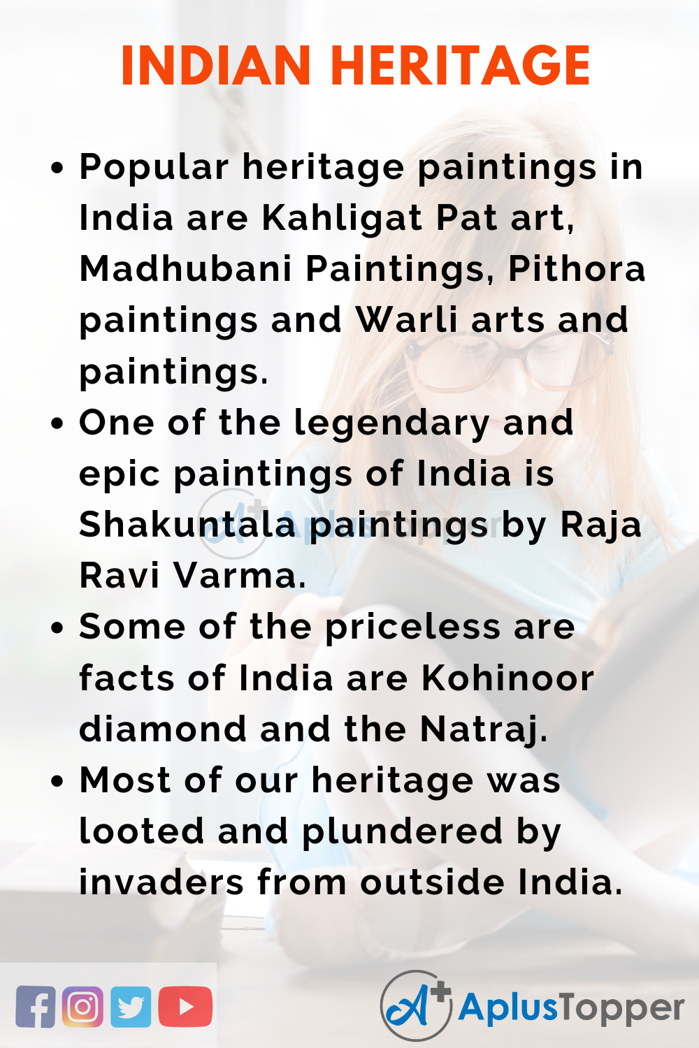 Find below the 600-word essay on Indian heritage is helpful to students of classes 7,8,9 and 10 in English.