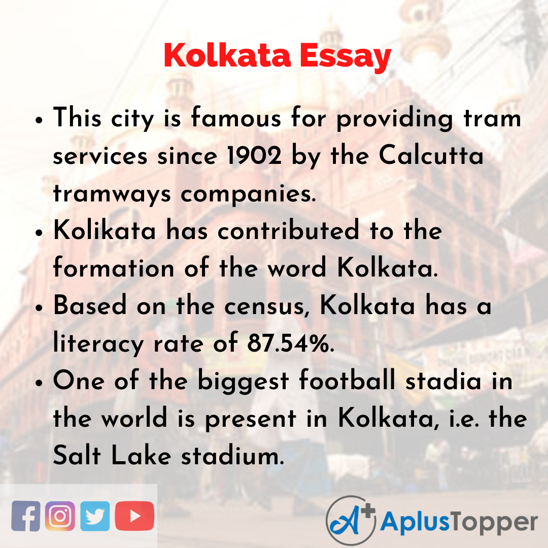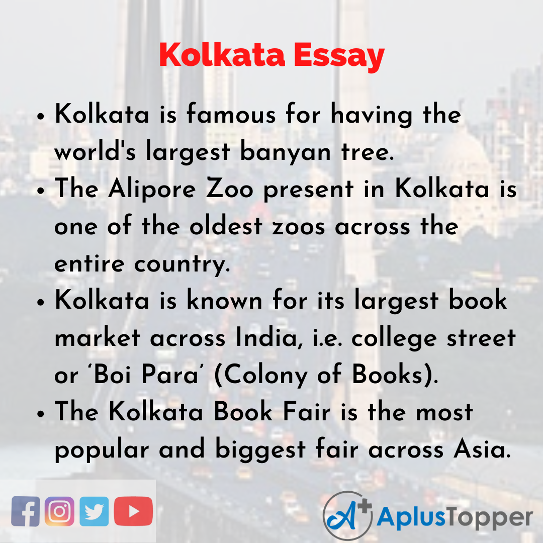 Long Essay on Kolkata is usually given to classes 7, 8, 9, and 10.