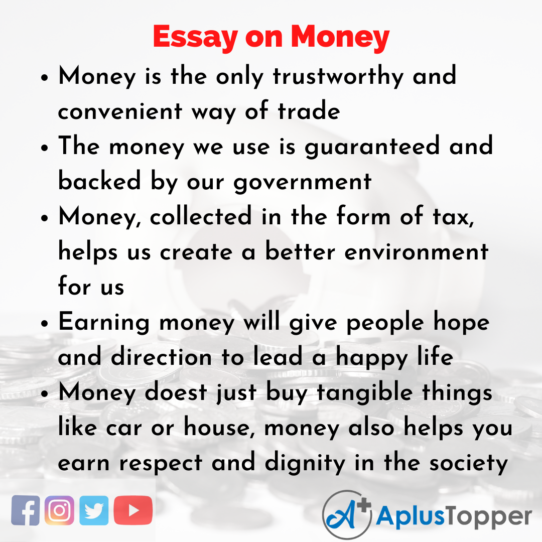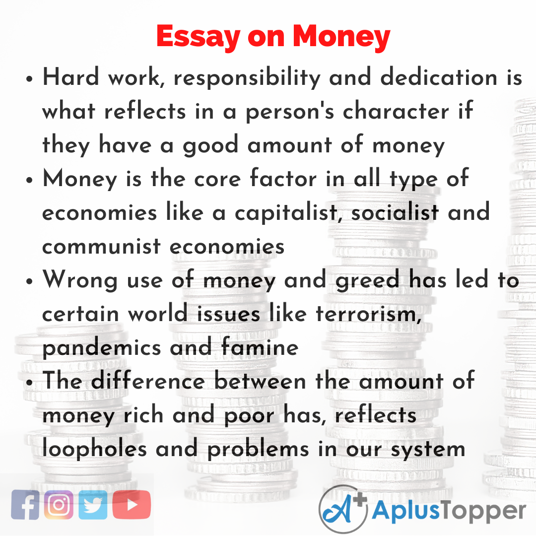 In this article, we provide a 600-word long essay on money for school children for projects and assignments. We also provide a 200-word short essay on money for school and college assignments and project work.