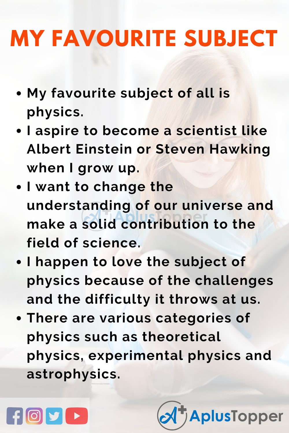 My Favourite Subject Essay is usually given to classes 7, 8, 9, and 10.