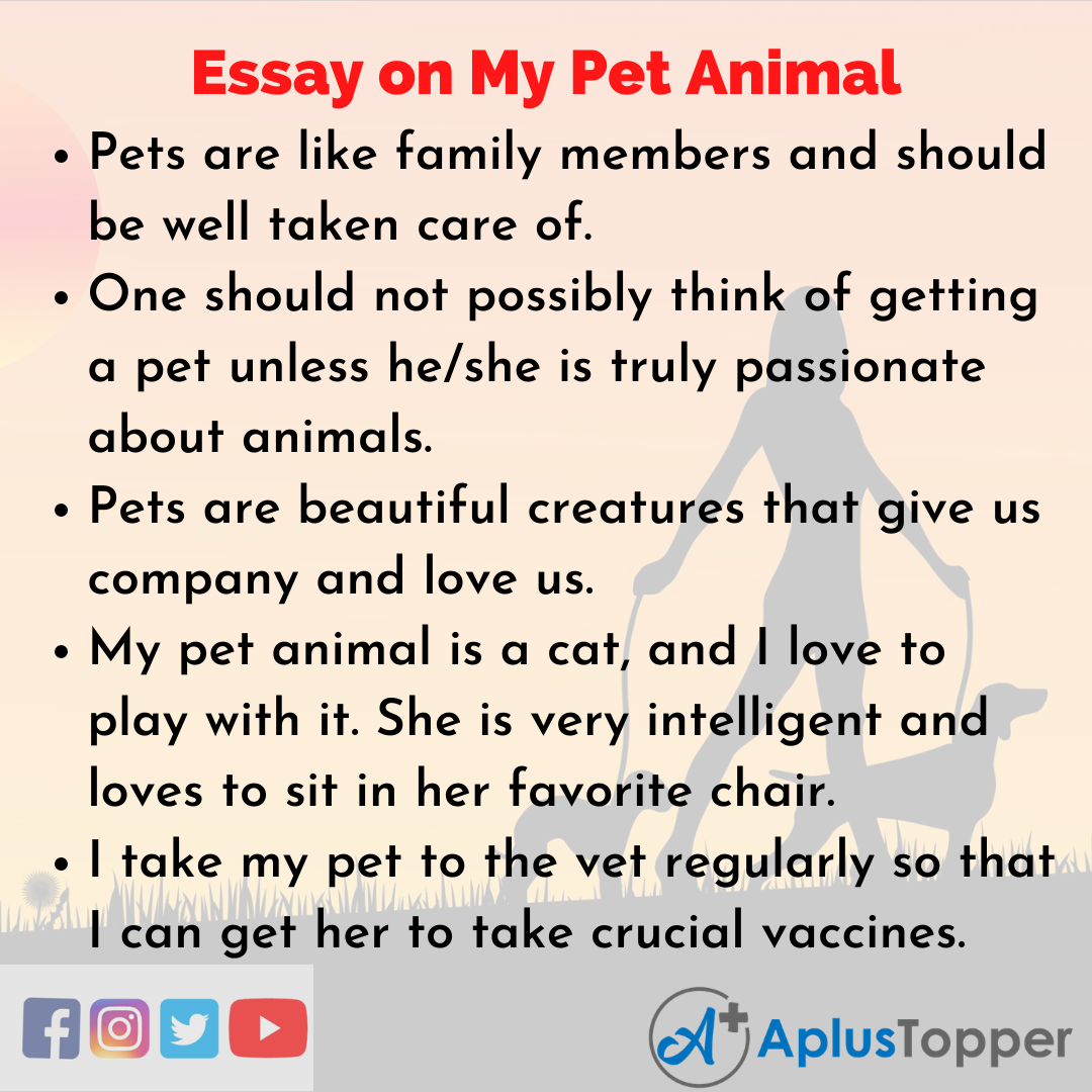 In this article, we have provided an extended essay on the topic of my pet animal and a brief essay on the same problem, in English. We have also provided ten lines on the topic to help students write essays on this topic in their examinations.
