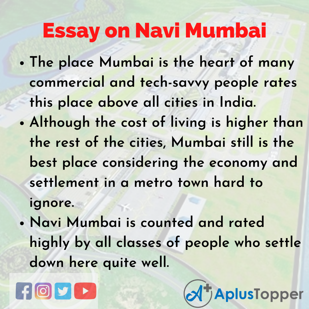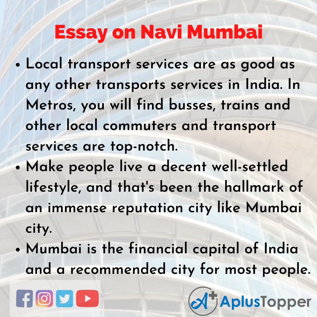 Long Essay on Navi Mumbai is usually given to classes 7, 8, 9, and 10.