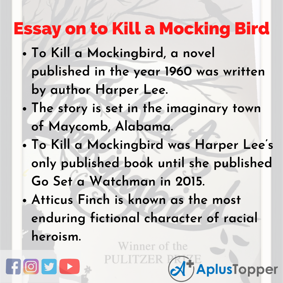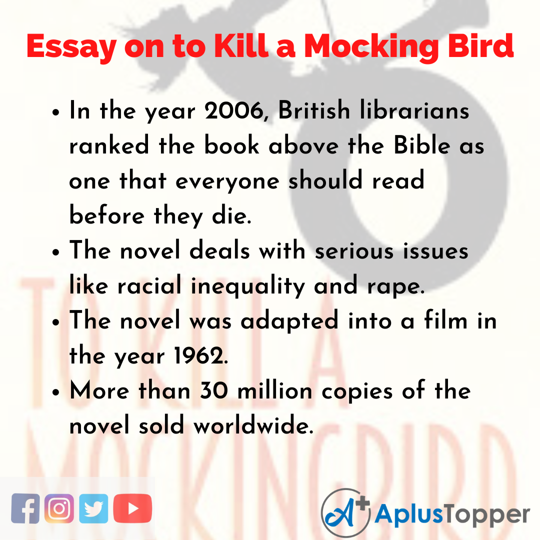 Short Essay on to Kill a Mocking Bird is usually given to classes 1, 2, 3, 4, 5, and 6.