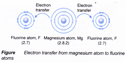 - Hence, one magnesium ion, Mg2+ and two fluoride ions, F–, are formed.
