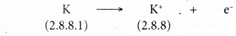 - During bond formation, each potassium atom loses one electron from its valence shell to achieve a stable octet electron arrangement (similar to the noble gas argon). A positive ion, K+ is formed.