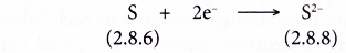 - Each sulphur atom accepts two electrons from a calcium atom into its valence shell to achieve a stable octet electron arrangement (similar to the noble gas argon). A negative ion, S2- is formed.