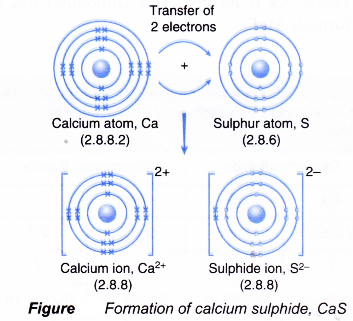- Figure shows the transfer of electrons from a calcium atom to a sulphur atom to form the ionic compound calcium sulphide.