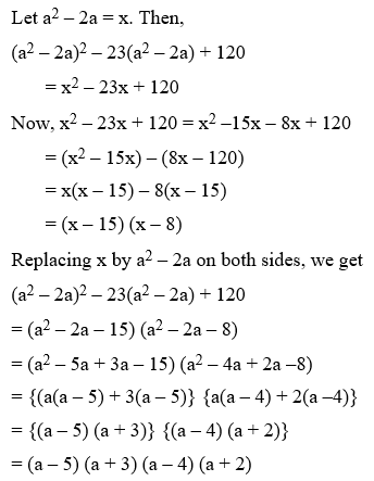 Example 4: Factorize (a2 – 2a)2 – 23(a2 – 2a) + 120.