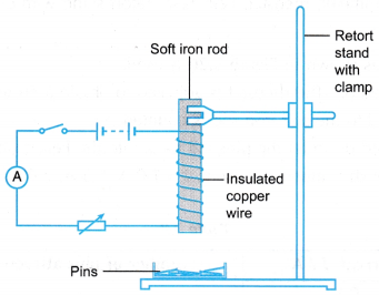 Materials: A box of pins, soft iron rod, insulated copper wire, connecting wires