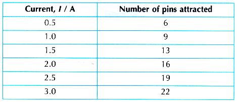 - The power supply is switched on and the number of pins attracted to the soft iron rod is counted.