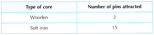 - The number of pins attracted by the coil with the soft iron rod is significantly more than the coil with the wooden rod.
