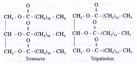 - Fats which contain esters of glycerol and saturated fatty acids are classified as saturated fats. Animal fats containing a large proportion of saturated esters tend to have high melting points and are solids at room temperature. Two saturated fats are given below.