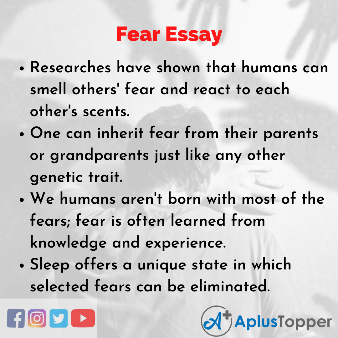 We are providing students with samples of a long essay of 500 words on the topic Fear and a short essay of 150 words on the topic Fear for reference.